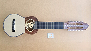 ノーマルなタイプですが、その制作技術、音の素晴らしさをお試しください。弦長=373m\mの最近では通常の長さです。チャランゴは値段ではなくあくまでご自身が気に入った音でえらうものですから試してからえらうものです。お早めにお越しくださいね。