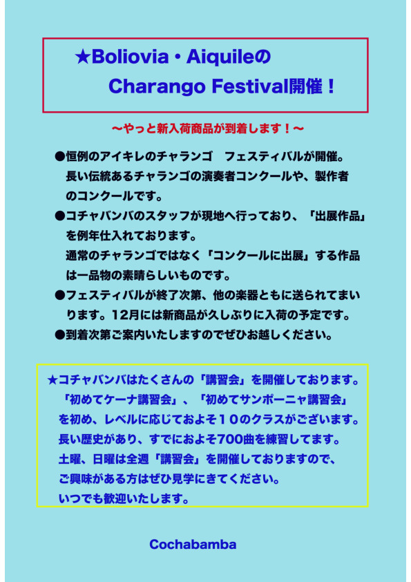 アンデスフォルクローレ音楽/楽器館「コチャバンバ」